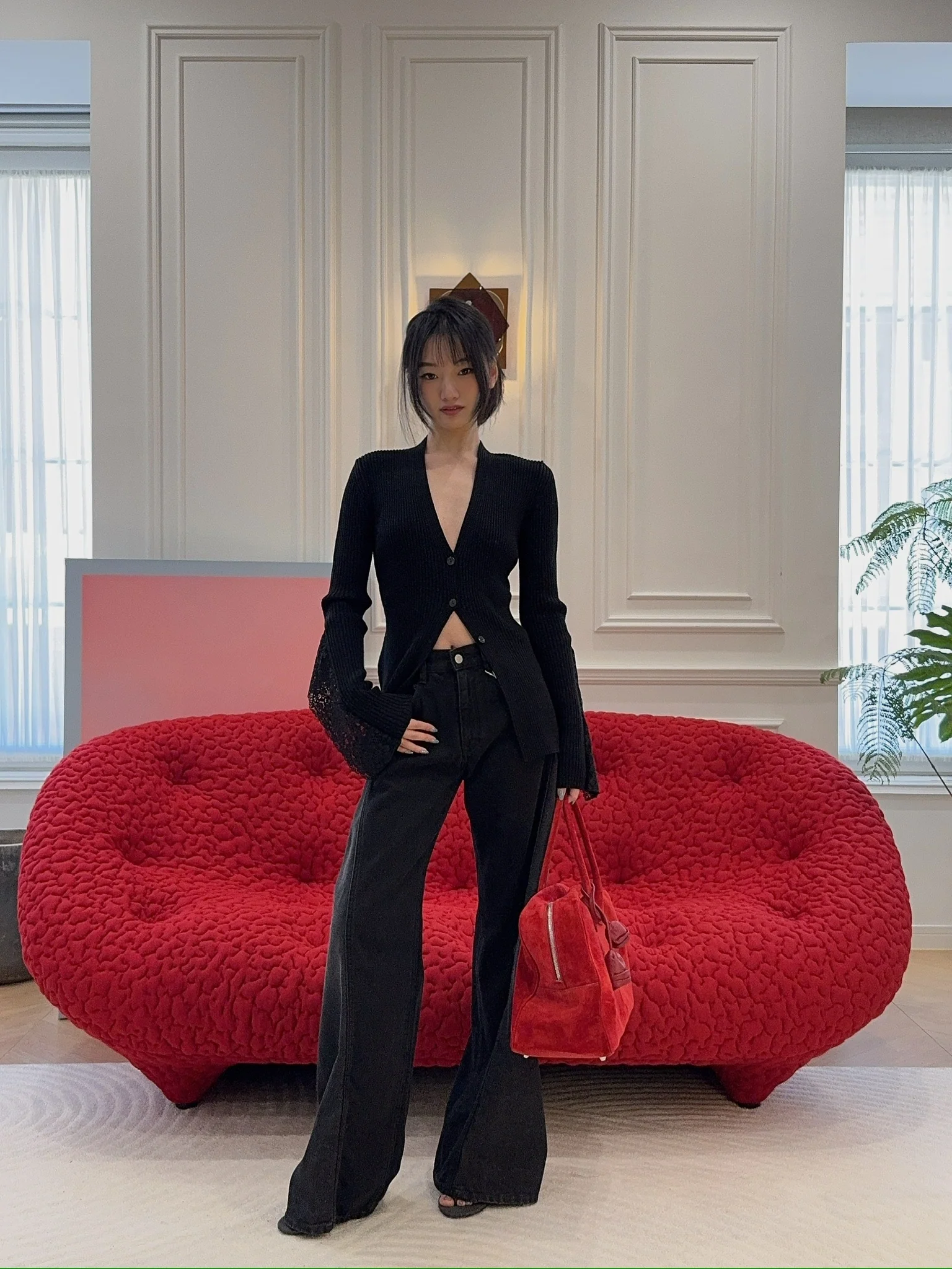 BLUMARINE - KNITTED CARDIGAN+LAC / BLACK