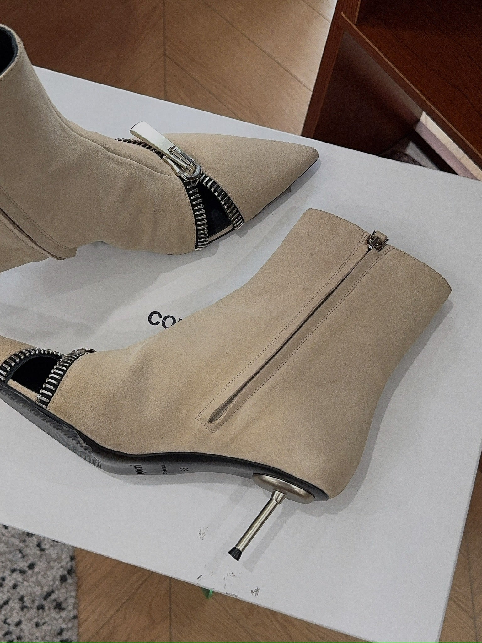 Zip-Detail Suede Ankle Boots From Coperni Featuring Beige, Suede, Zip Details, Pointed Toe, Side Zip Fastening, Ankle-Length And Branded Leather Insole.