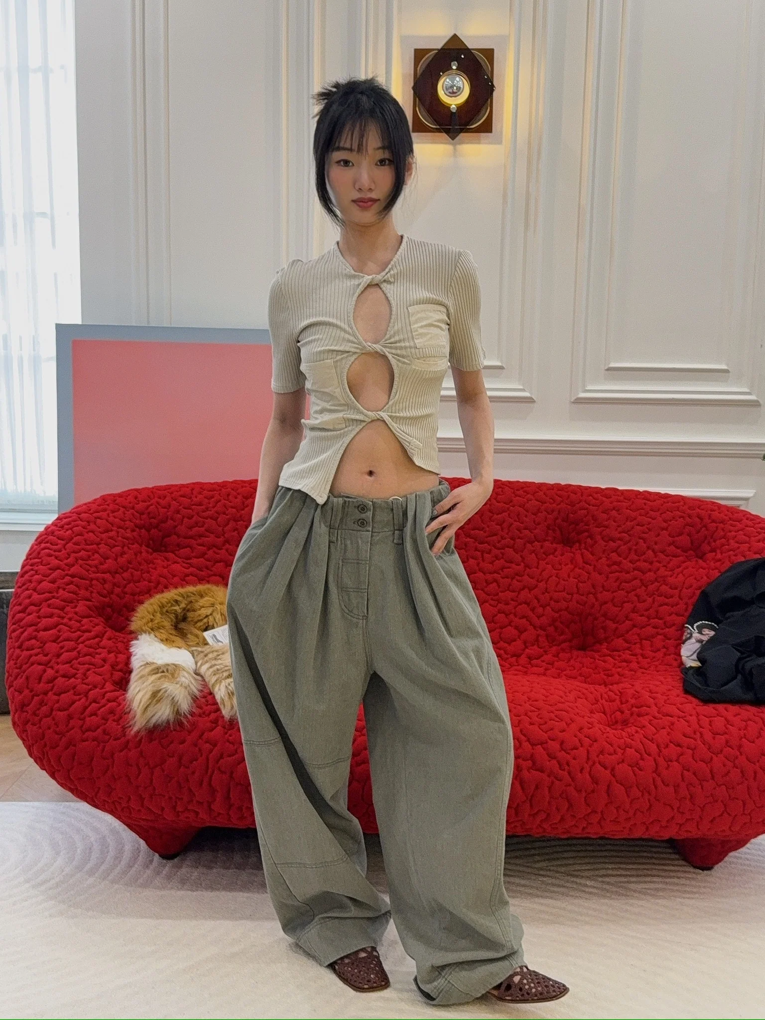 OPEN YY - Full Gather Pants in Green