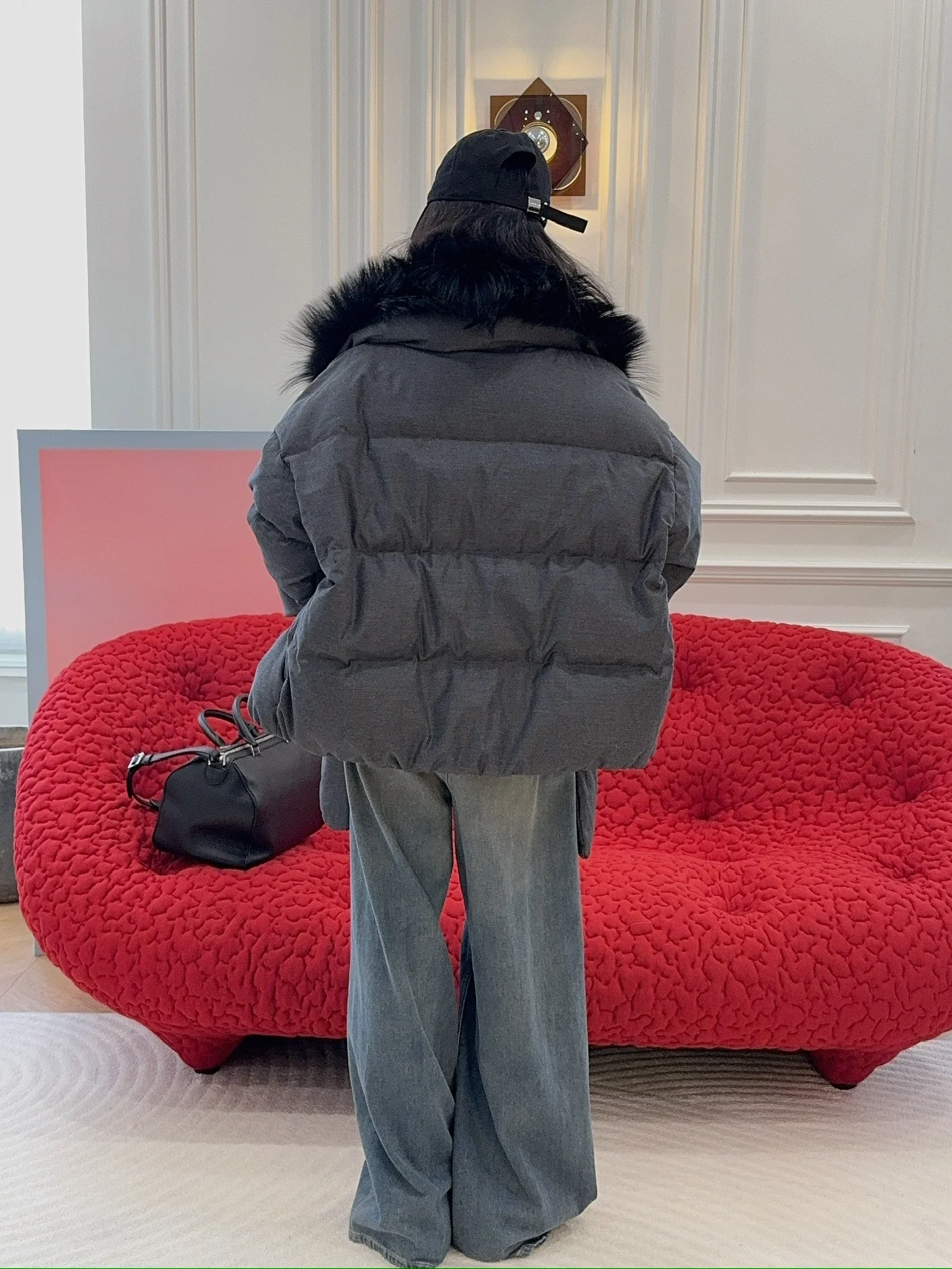 YVES SALOMON - DOWN JACKET MADE WITH LORO PIANA FLANNEL/FOX / GRIS ANTHRACITE